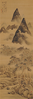 高久靄厓(1796-1843)は、杉渡土(戸)(現那須塩原市越堀)に生まれ、一時黒羽の小泉斐に入門したとされます。27歳のときに谷文晁の写山楼に入門するために江戸に出ます。その後頭角を現し、渡辺崋山・椿椿山・立原杏所とともに「文晁門四哲」の一人に数えられるようになります。当館では、靄厓の作品とともに靄厓没後に後継となった高久隆古や周辺の作品を収集し所蔵しています。