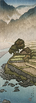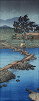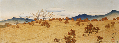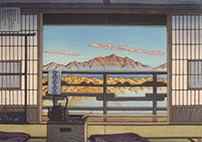 川瀬巴水(1883-1957)は、東京市芝区(現東京都港区新橋)に生まれ、小さい頃に塩原の伯母に預けられたこともあり、塩原との縁が深く、巴水の最初の作品は塩原三部作といわれる《塩原おかね道》《塩原畑下り》《塩原しほがま》です。その後も、塩原を題材とした多くの作品を制作しました。